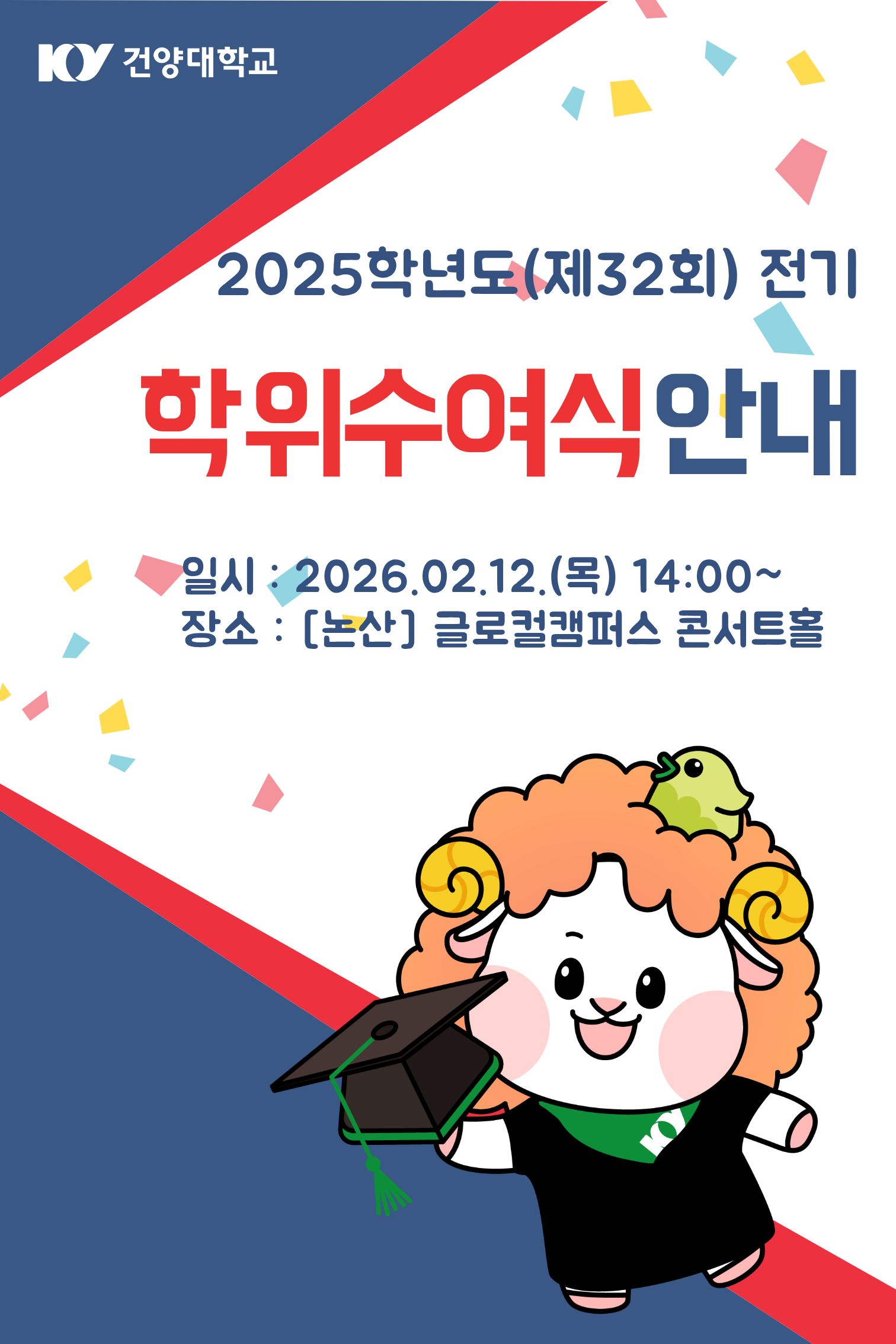 | 제목 | 2025학년도(제32회) 전기 학위수여식 개최 안내 | ||||