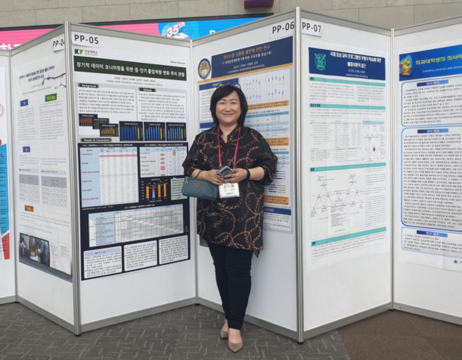 건양대 천경희 교수, 한국의학교육학회 ‘우수 포스터상’ 수상 건양대학교(총장 이원묵) 의과대학 천경희 교수(의학교육학교실)가 지난 5월 31일부터 6월 1일까지 경주화백컨벤션센터에서 열린 제35차 의학교육학술대회에서 우수 포스터상을 수상했다. ‘창의와 가치 지향 의학교육’이라는 주제로 개최된 한국의학교육학회 의학교육학술대회는 국내∙외 의학교육 전문가들이 모여 의학교육의 혁신과 미래에 대해 조망하고 다양한 시선으로 그 실천전략을 모색하는 자리로 진행됐다. 우수포스터상을 수상한 천경희 교수는 ‘장기적 데이터 모니터링을 위한 중∙단기 졸업역량 변화추이 관찰’이라는 연구를 통해 포스터를 발표했다. 한국의학교육학회는 우리나라 의학교육 발전을 위하여 1983년 창립됐으며 의학교육의 발전을 도모하기 위하여 의학교육의 제도, 목표, 방법 및 평가와 이에 관련된 모든 분야에 대한 체계적이고도 과학적인 연구와 그 지식의 보급을 목적으로 하고 있다.
