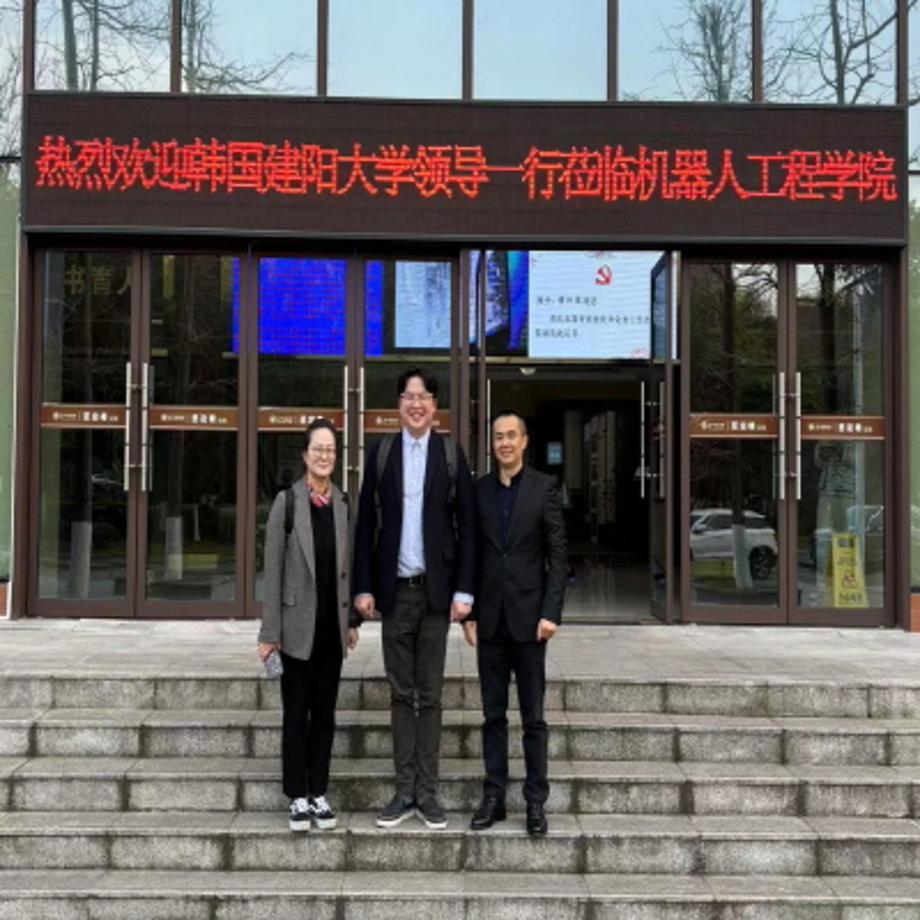 10일 중국 충칭 창쟝사범대학을 방문한 건양대 국제교류원 소연 교수(맨 왼쪽)와 고동연 직원(가운데)과 창챵사범대학 황쟝보 로봇공정대학장의 기념사진.jpg