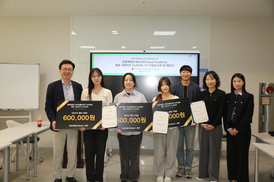 김용석 단장은 이날 최종 보고회에서 “CLOVER 서포터즈의 열정적인 활동이 건양대와 네이버클라우드 아카데미의 협력 관계를 더욱 단단하게 만들었다”며 “앞으로도 학생들이 클라우드 산업의 성장 현장을 직접 경험하고 실무 역량을 키울 수 있는 다양한 기회를 지속적으로 확대하겠다”고 밝혔다. 한편, 건양대학교는 네이버클라우드와 협력하여 AI·클라우드 전문 교육과정을 운영 중이며, 향후 산업체 연계 실습과 프로젝트 기반의 현장형 교육을 통해 지역 청년들의 취·창업 역량을 강화해 나갈 계획이다.