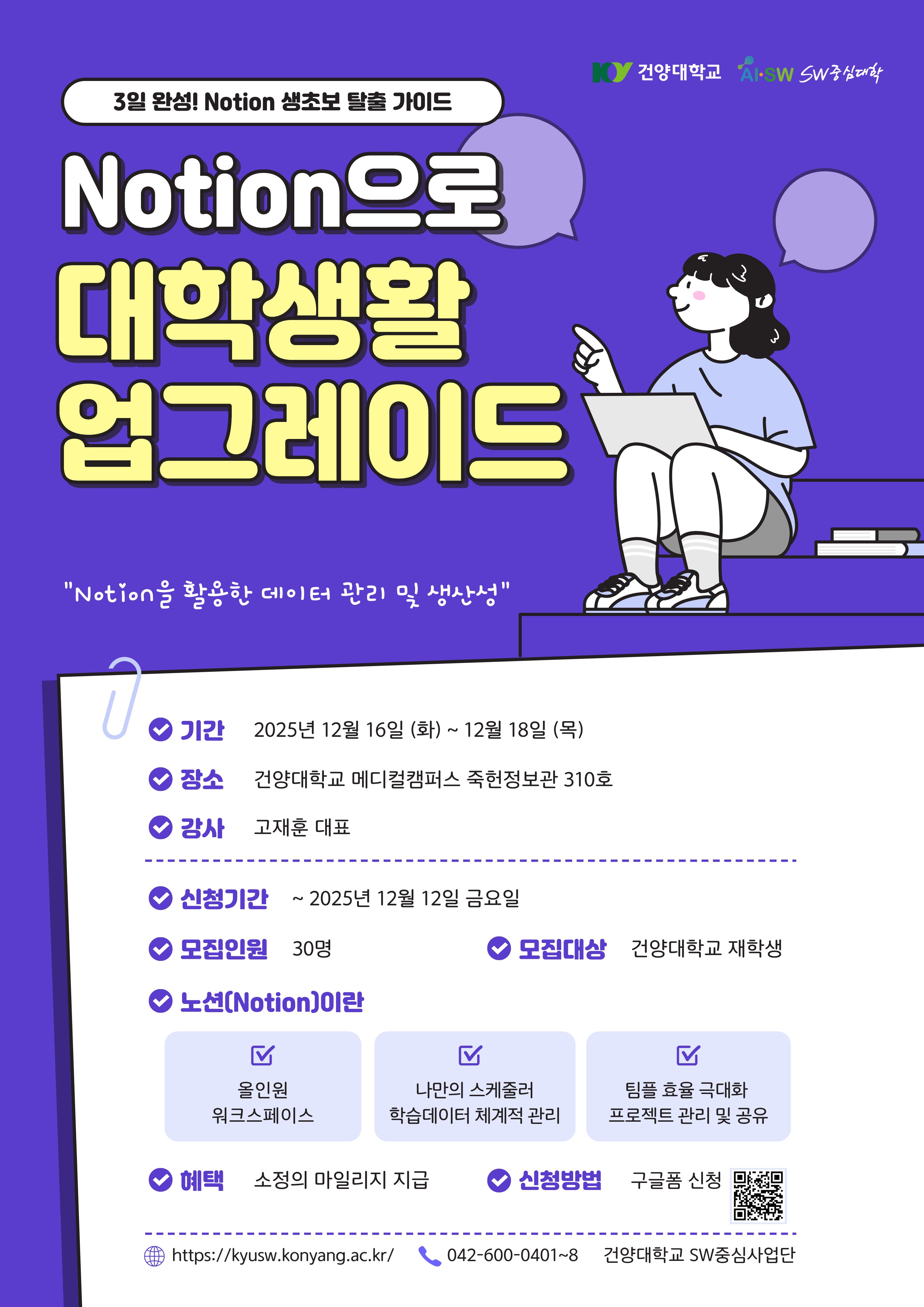 『 Notion 프로그램 신청 안내 』글의 상세내용을 확인하는 표로 제목, 부서명, 등록일, 조회, 첨부, 내용으로 나뉘어 설명합니다.